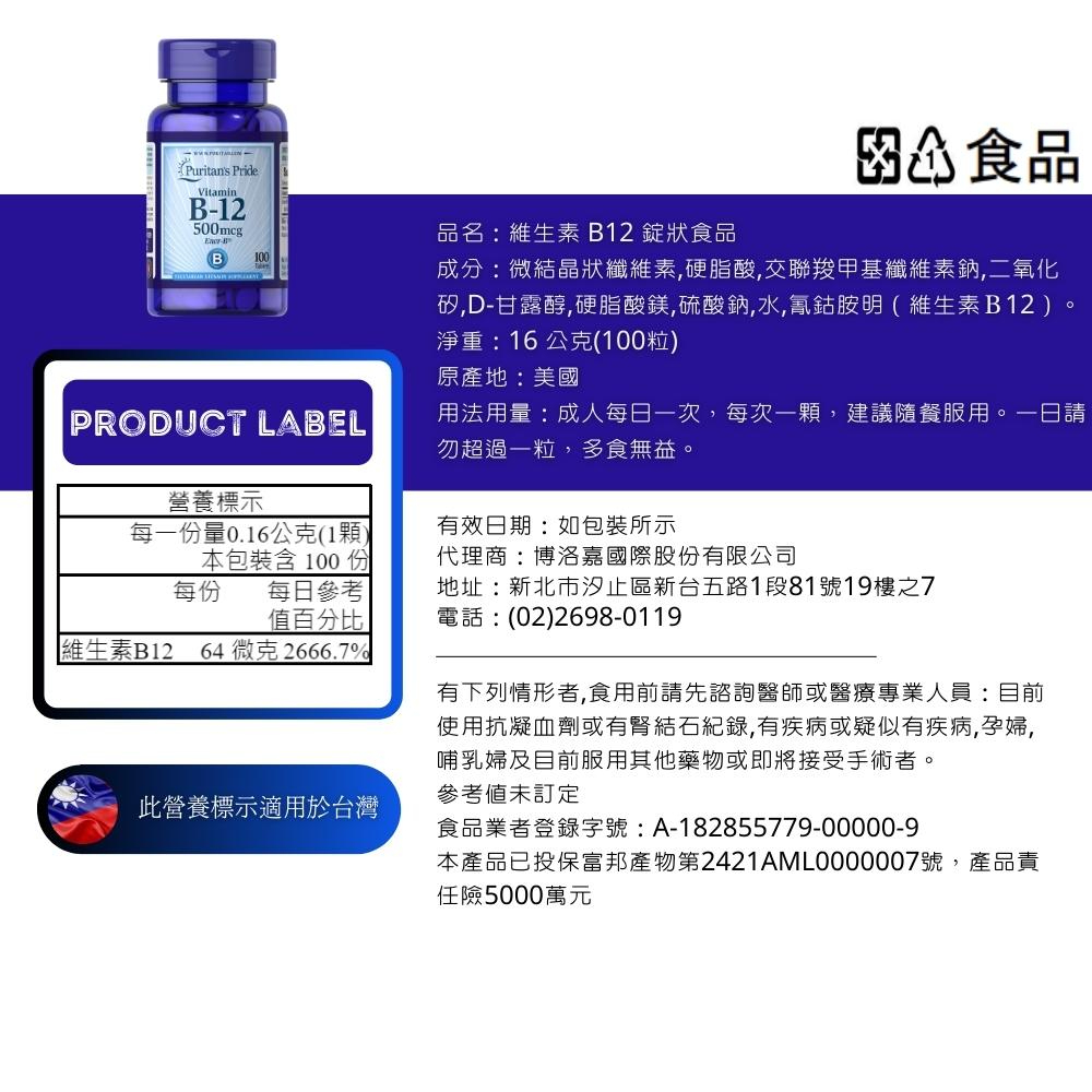 【Puritan’s Pride 普瑞登】維生素 B12 錠狀食品 (100粒/瓶) 台灣總代理【Puritan’s Pride 普瑞登】維生素 B12 錠狀食品 (100粒/瓶) 台灣總代理Well BeingPuritan’s Pride 普瑞登 台灣總代理