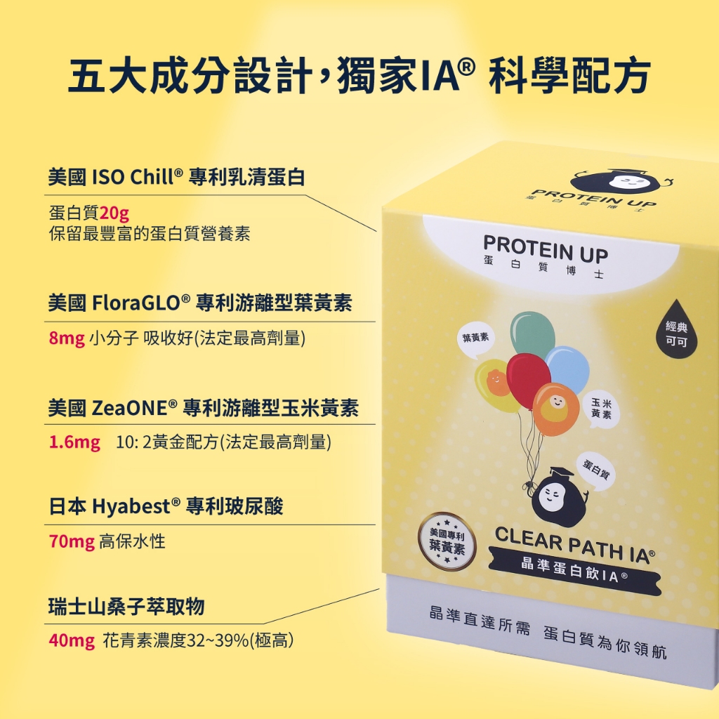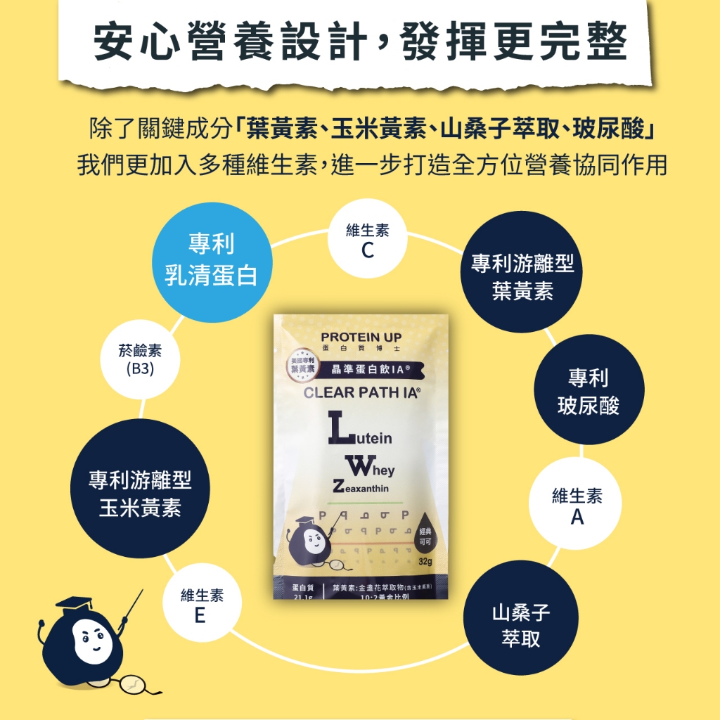蛋白質博士 晶準蛋白飲 8入盒裝_機能乳清_乳清蛋白+葉黃素+玉米黃素+玻尿酸+山桑子_專利眼睛配方 無糖無負擔經典可可|堅果可可|咖啡拿鐵Well BeingPROTEIN UP 蛋白質博士