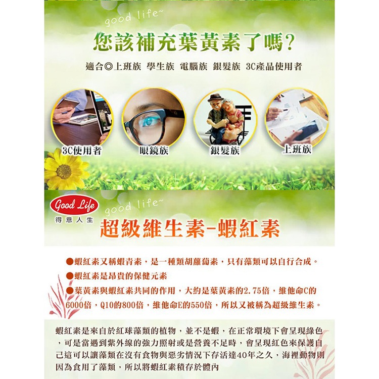 【得意人生】高單位葉黃素加蝦紅素(原廠公司貨)單瓶(60顆)|三瓶(180顆)|六瓶(360顆)Well BeingSeeyou品牌旗艦館