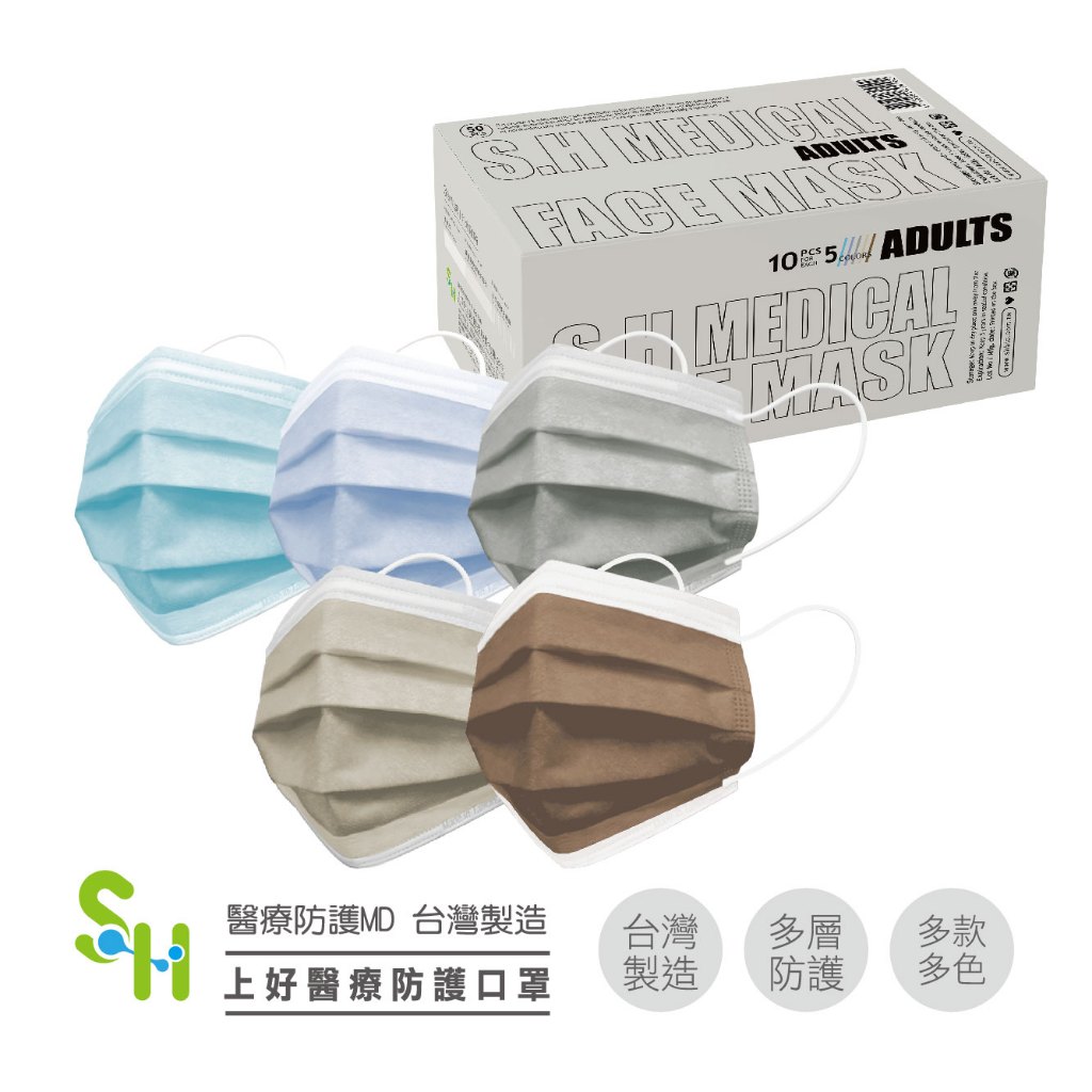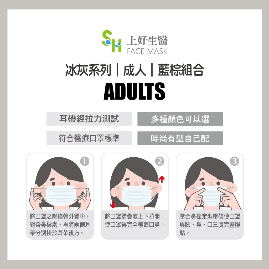 【上好生醫】成人|冰灰系列-藍棕組合|50入裝 醫療防護口罩冰灰系列-藍棕組合Medical Gloves & MasksSH 上好生醫