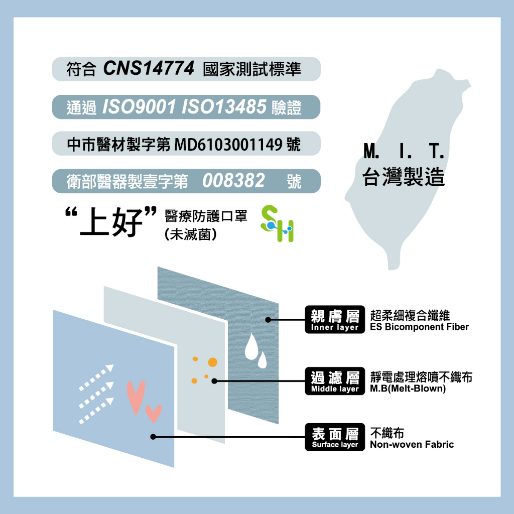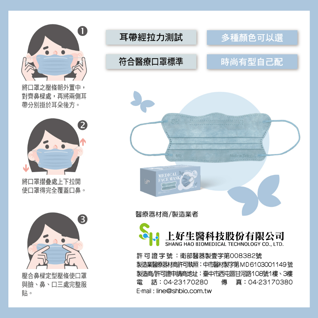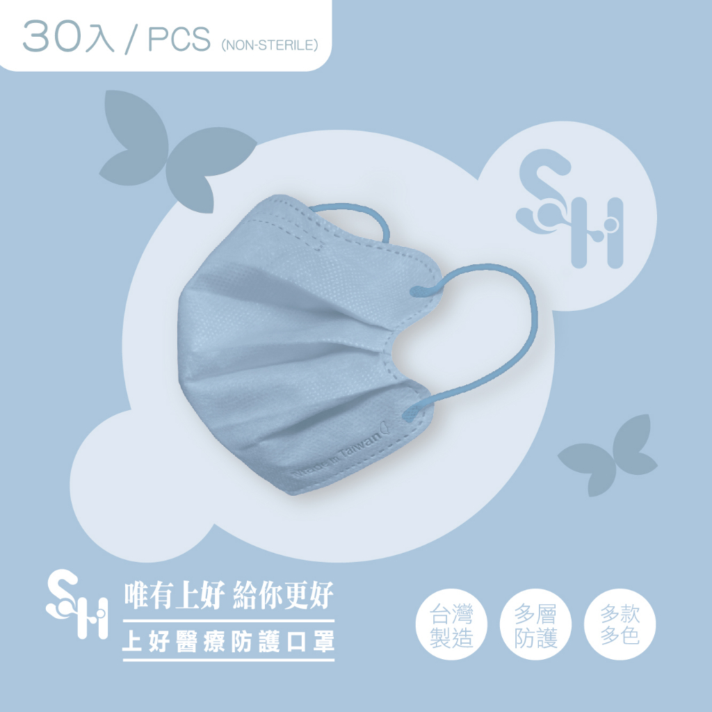 【上好生醫】成人|水霧藍(蝶型)|30入裝 醫療防護口罩水霧藍(蝶型) 30入Medical Gloves & MasksSH 上好生醫