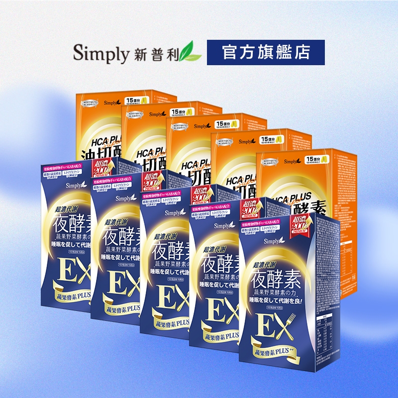 【Simply新普利】油切酵素錠EX*5+超濃代謝夜酵素錠EX*5 (促進代謝 GABA 藤黃果)5+5盒組Weight ManagementSimply新普利酵素官方旗艦店