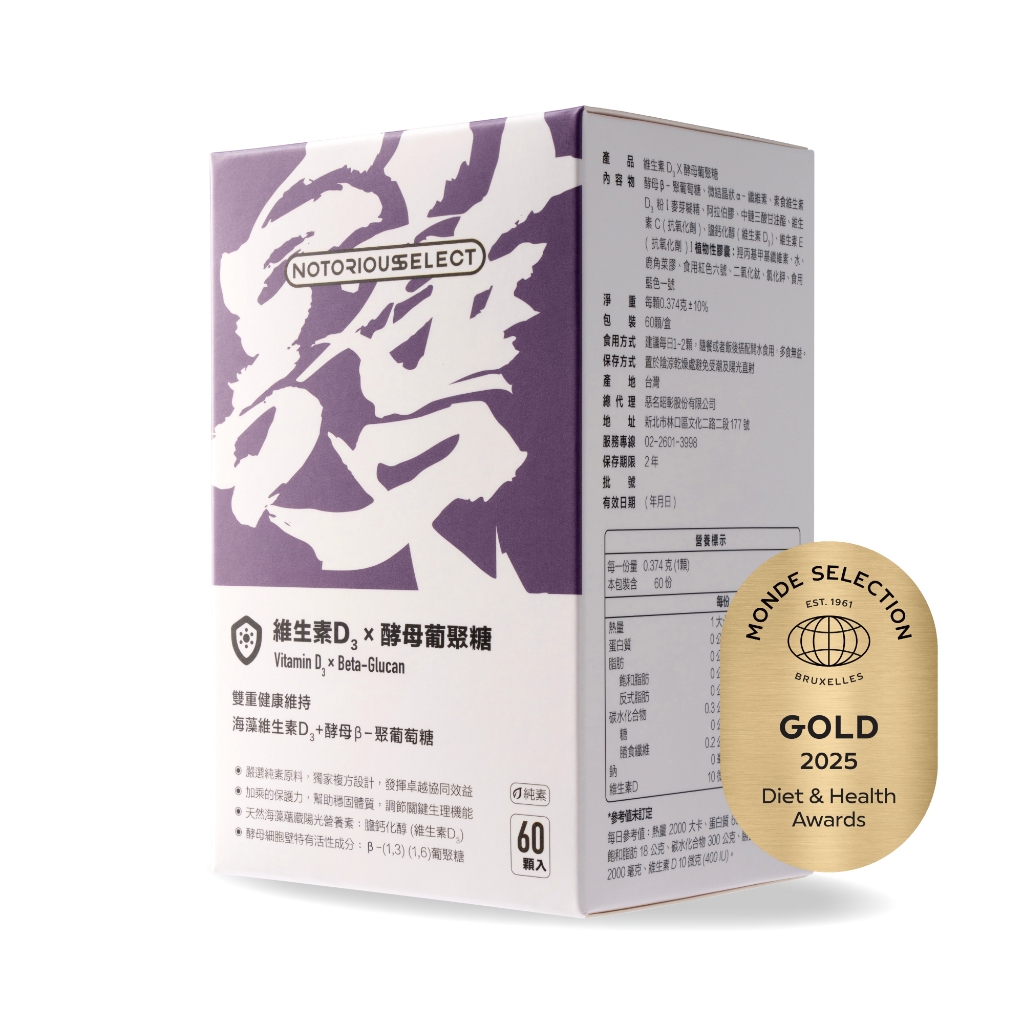 【Notorious】惡名昭彰.維生素D3X酵母葡聚糖 多件優惠 維生素D3 保健食品 館長|官方正品盒Well BeingNotorious Taiwan