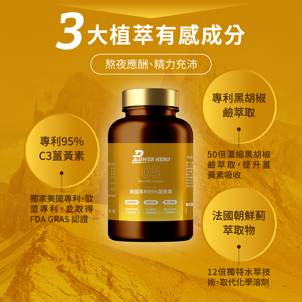 【PowerHero】美國專利95%薑黃素 1/2/4入組(60顆/盒)《95%高濃度C3》1入|4入|2入Well BeingPowerHero 官方旗艦館