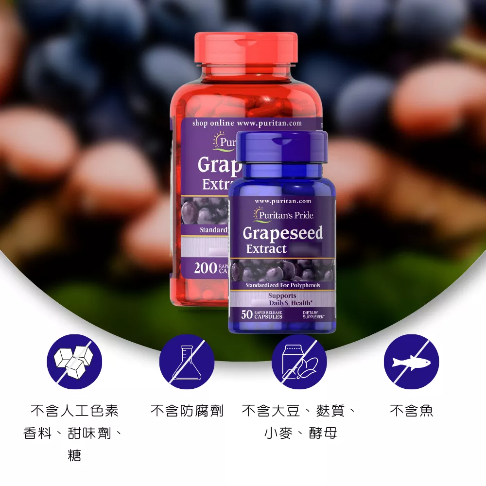 【Puritan’s Pride 普瑞登】Grapeseed Extract 高單位葡萄籽精萃100毫克50/100粒裝50顆|100顆Well BeingPuritan’s Pride 普瑞登 台灣總代理