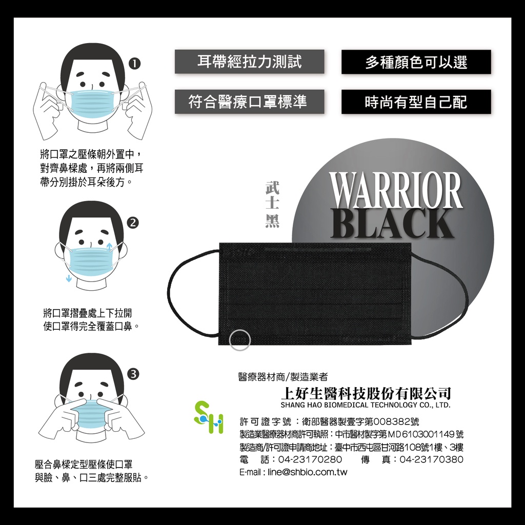 【上好生醫】武士黑|50入裝 醫療防護口罩成人|幼幼|兒童Medical Gloves & MasksSH 上好生醫