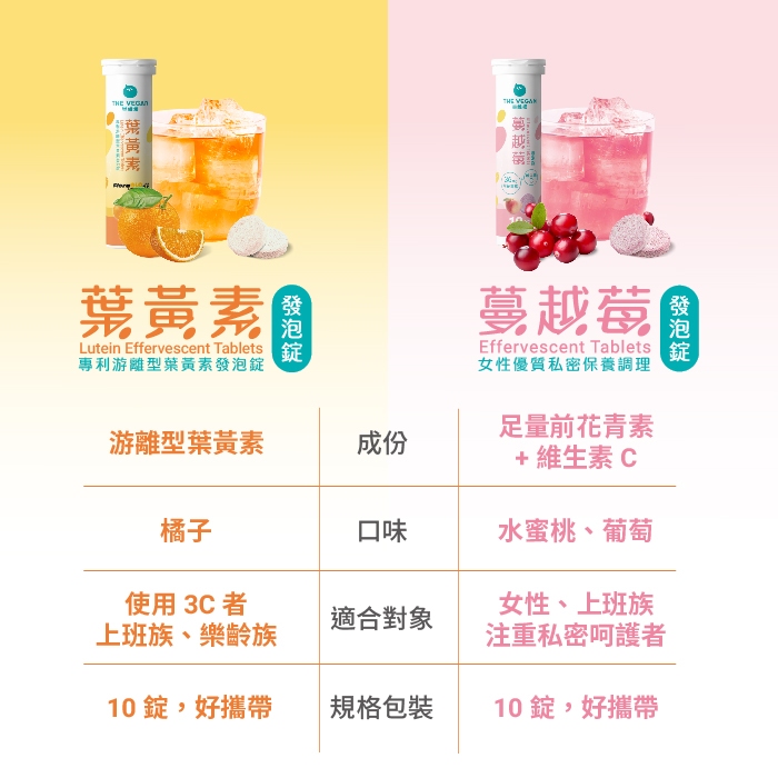THE VEGAN 樂維根 蔓越莓發泡錠 葉黃素發泡錠 10錠/條 維他命C發泡錠 水蜜桃發泡錠 前花青素發泡錠蔓越莓發泡錠(葡萄)2026.08.04|蔓越莓發泡錠(水蜜桃)26.06.23|葉黃素發泡錠(橘子)2026.10.13Well BeingRS睿森嚴選|秋樂富油品