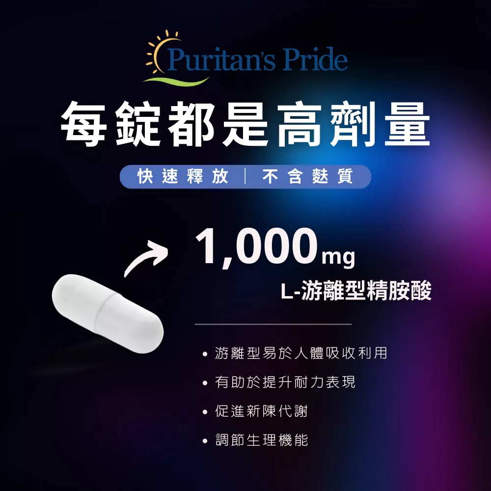 【Puritan’s Pride 普瑞登】 L-Arginine 精氨酸 游離形1000毫克(100 Tablets)【Puritan’s Pride 普瑞登】 L-Arginine 精氨酸 游離形1000毫克(100 Tablets)Well BeingPuritan’s Pride 普瑞登 台灣總代理