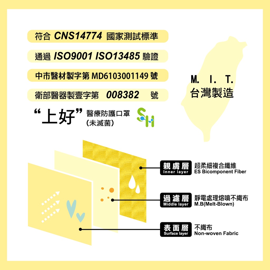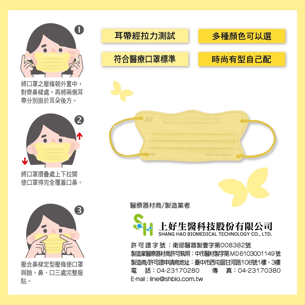 【上好生醫】成人|布丁黃(蝶型)|30入裝 醫療防護口罩【上好生醫】成人|布丁黃(蝶型)|30入裝 醫療防護口罩Medical Gloves & MasksSH 上好生醫