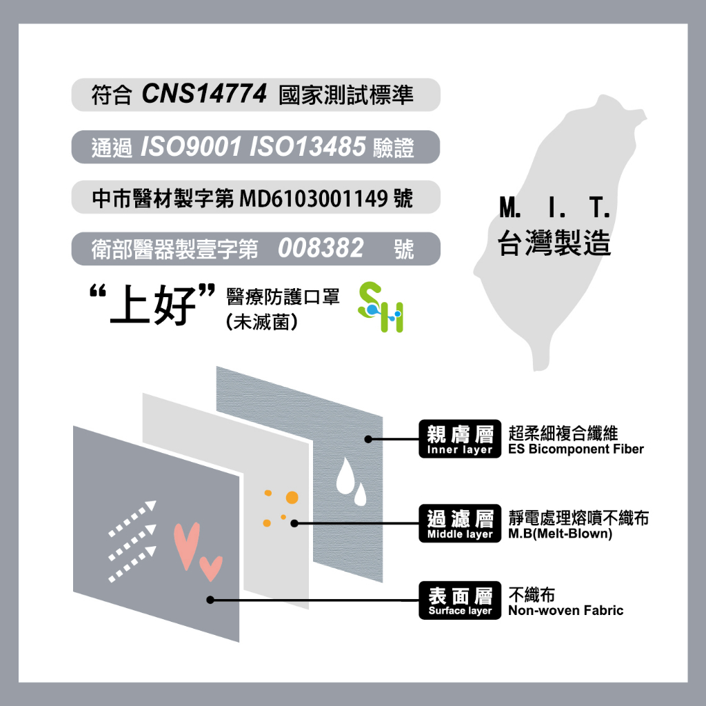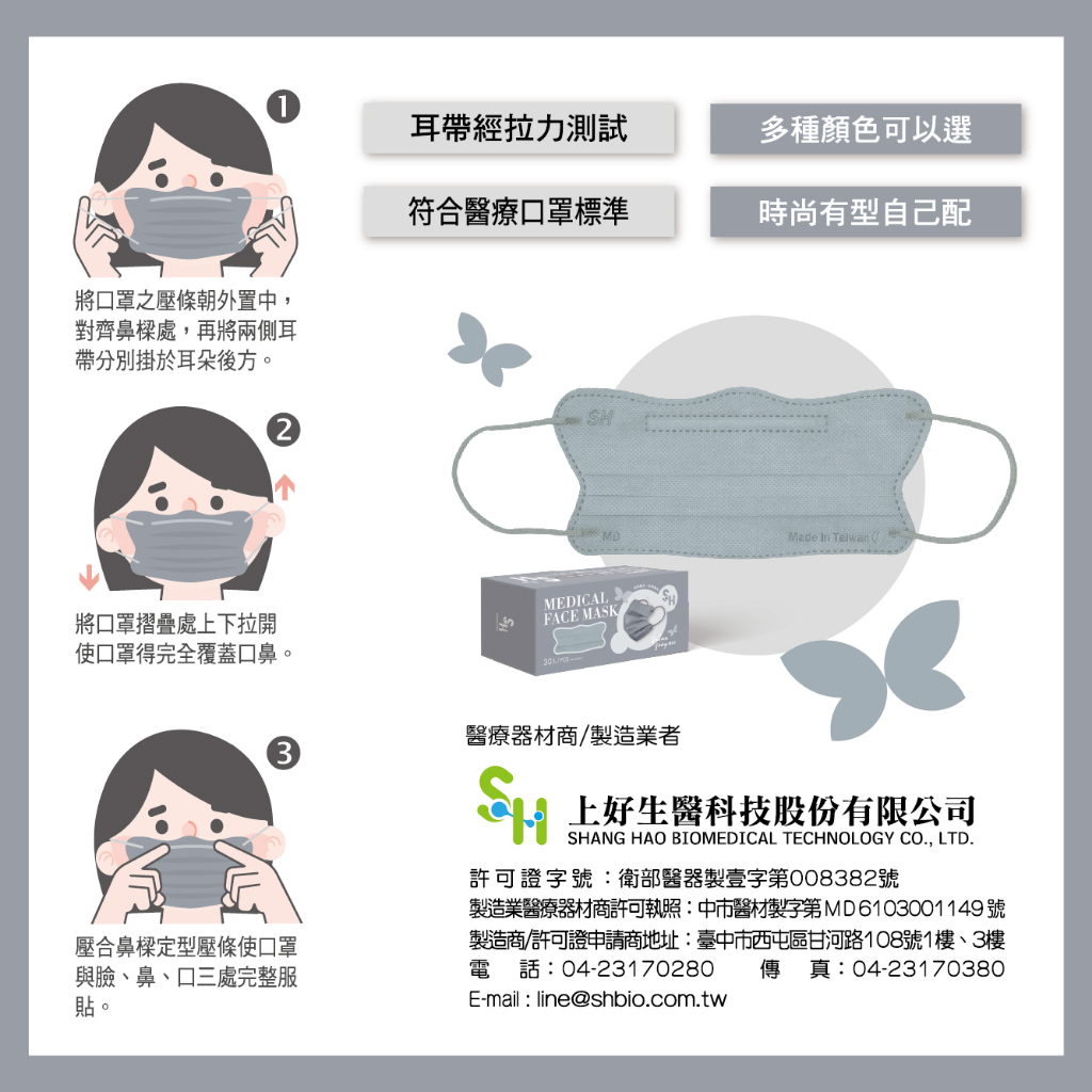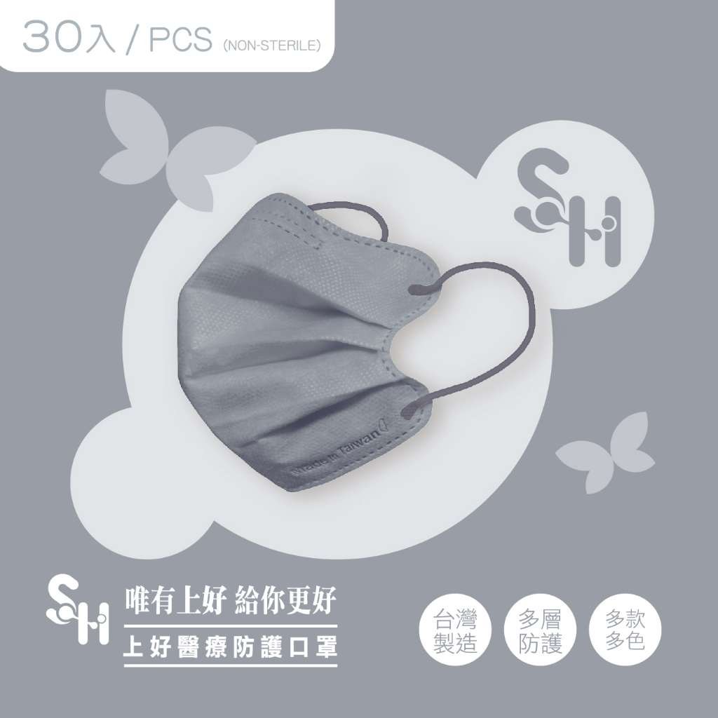 【上好生醫】成人|都市灰(蝶型)|30入裝 醫療防護口罩都市灰(蝶型) 30入Medical Gloves & MasksSH 上好生醫