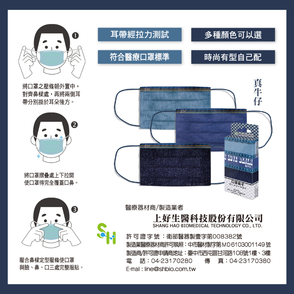 【上好生醫】成人|真牛仔(含3款)|15入裝 醫療防護口罩真牛仔(含3款) 15入裝Medical Gloves & MasksSH 上好生醫