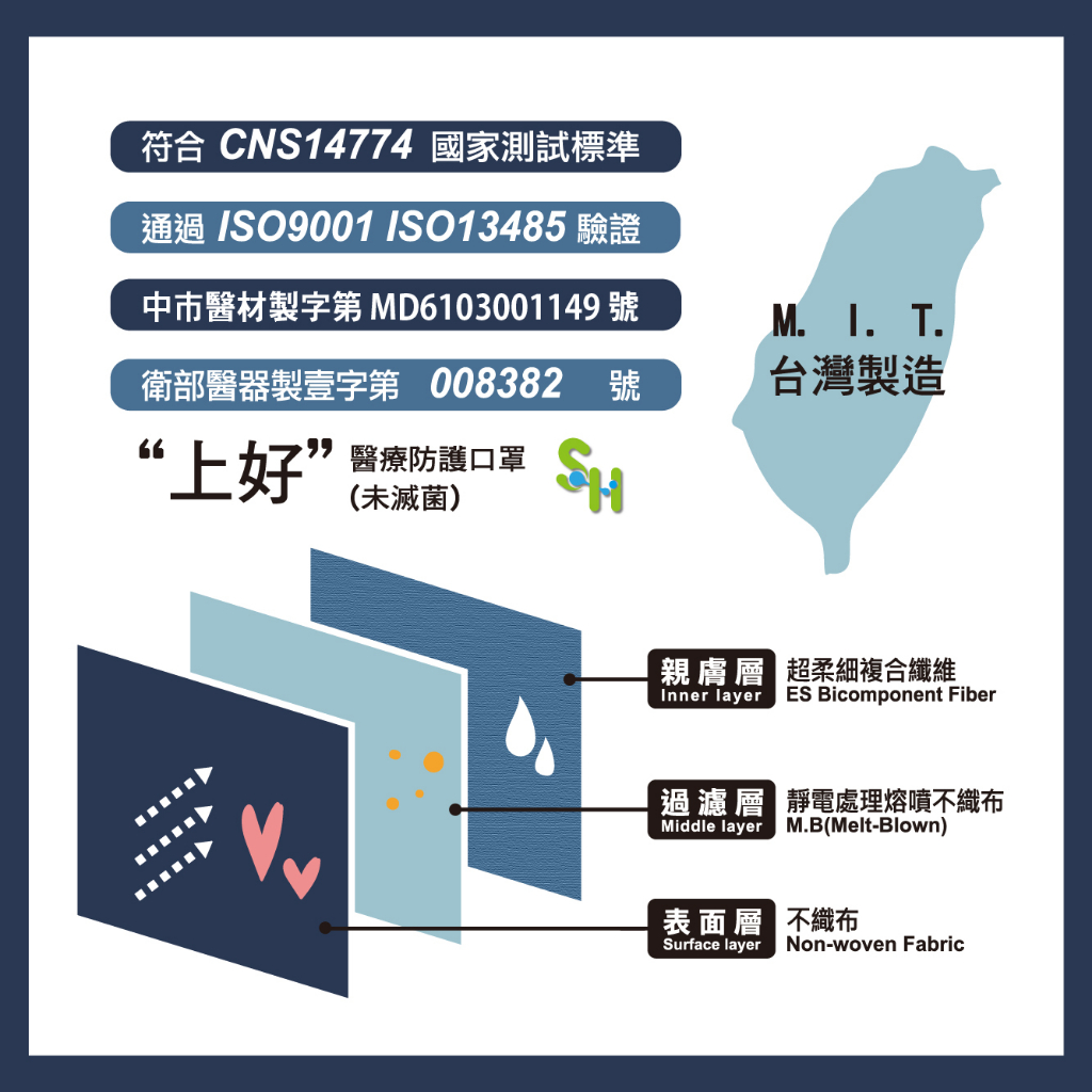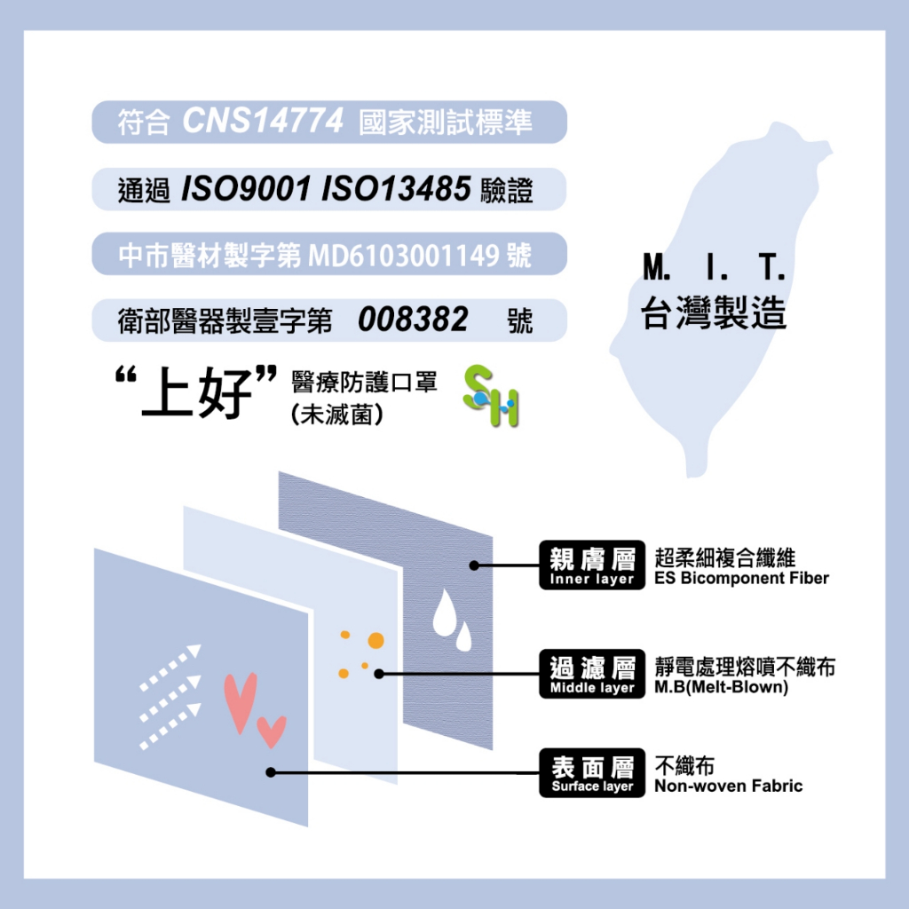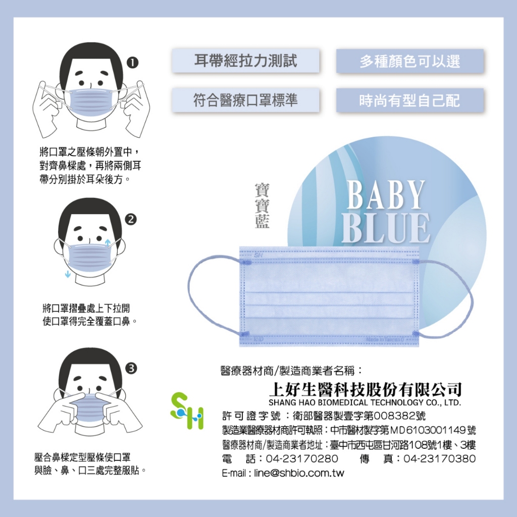 【上好生醫】成人|寶寶藍|50入裝 醫療防護口罩寶寶藍Medical Gloves & MasksSH 上好生醫