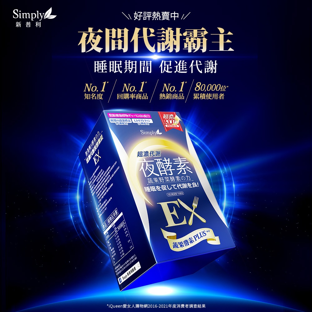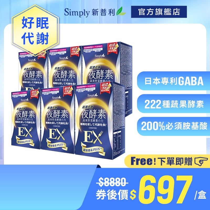 【Simply新普利】超濃代謝夜酵素錠EX 30顆(x6盒) (排便順暢 促進代謝 GABA 酵素)6盒Weight ManagementSimply新普利酵素官方旗艦店