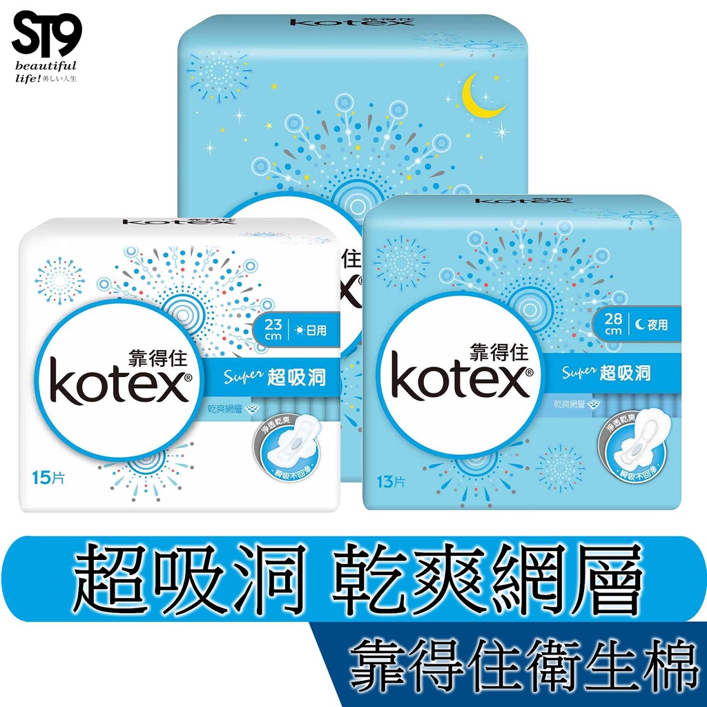 Kotex 靠得住超吸洞乾爽網層 日用 夜用 衛生棉 中央瞬吸蜂巢 隔離不回滲 六角形立體導孔流日用 23cm 15片|夜用 28cm 13片|夜用 35cm 9片Feminine CareST9PLUS 品牌 零售 批發 團購