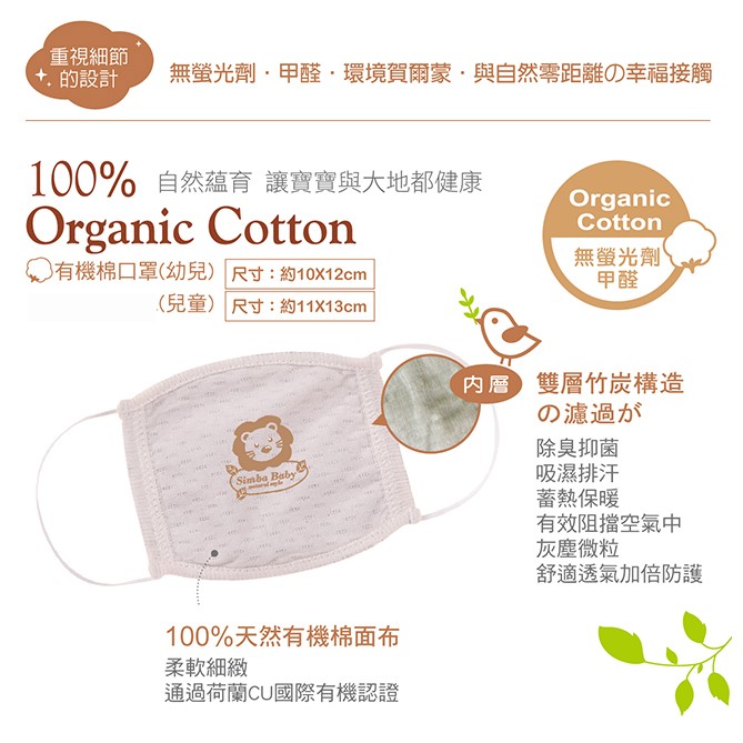 小獅王辛巴 有機棉口罩幼兒-約8.5x11cm(0~3歲適用)|兒童-約9×12.5cm(3歲以上適用)Insect RepellentsSimba小獅王辛巴 官方旗艦店