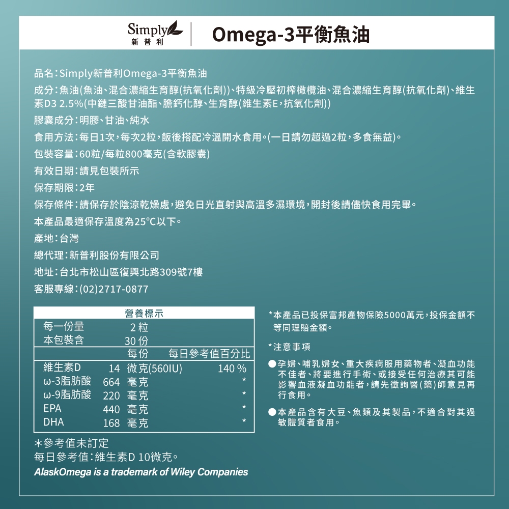 【Simply新普利】Omega-3平衡魚油(60顆/盒) 加贈魚油10錠1盒(60顆/盒) 加贈10顆Well BeingSimply新普利酵素官方旗艦店