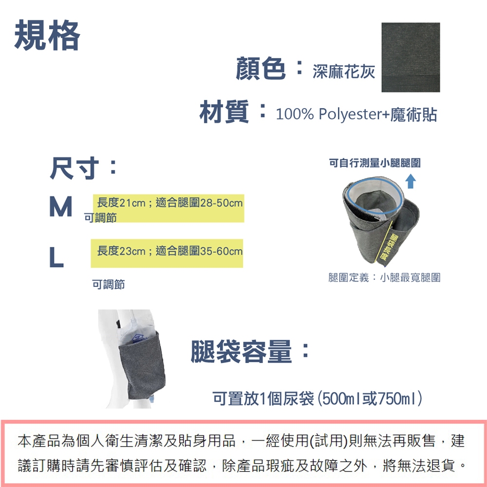 MIITA 隱藏式尿袋腿袋深灰麻花 M|深灰麻花 LAdult Diapers & Incontinenceplus健康醫療專營店