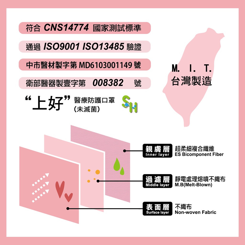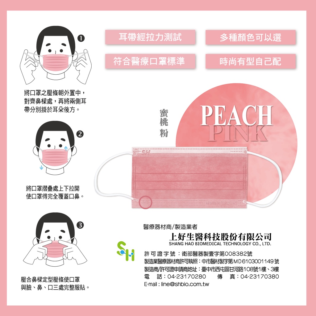 【上好生醫】成人|蜜桃粉|50入裝 醫療防護口罩成人款 W17.5*H9.5(cm)Medical Gloves & MasksSH 上好生醫