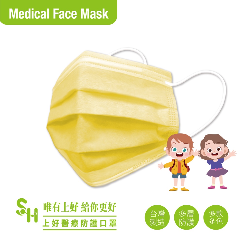 【上好生醫】兒童| 素面款|芭娜娜黃|50入裝 醫療防護口罩兒童款,W14.5*H9.5(cmMedical Gloves & MasksSH 上好生醫