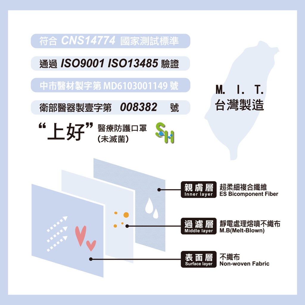 【上好生醫】兒童|寶寶藍|50入裝 醫療防護口罩兒童款,W14.5*H9.5(cm)Medical Gloves & MasksSH 上好生醫