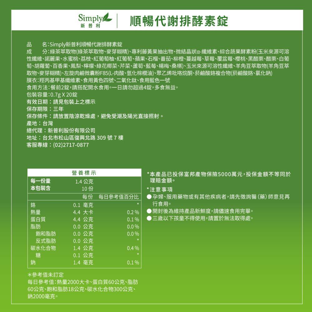【Simply新普利】排酵素錠 20錠/盒(x5盒)5盒Weight ManagementSimply新普利酵素官方旗艦店