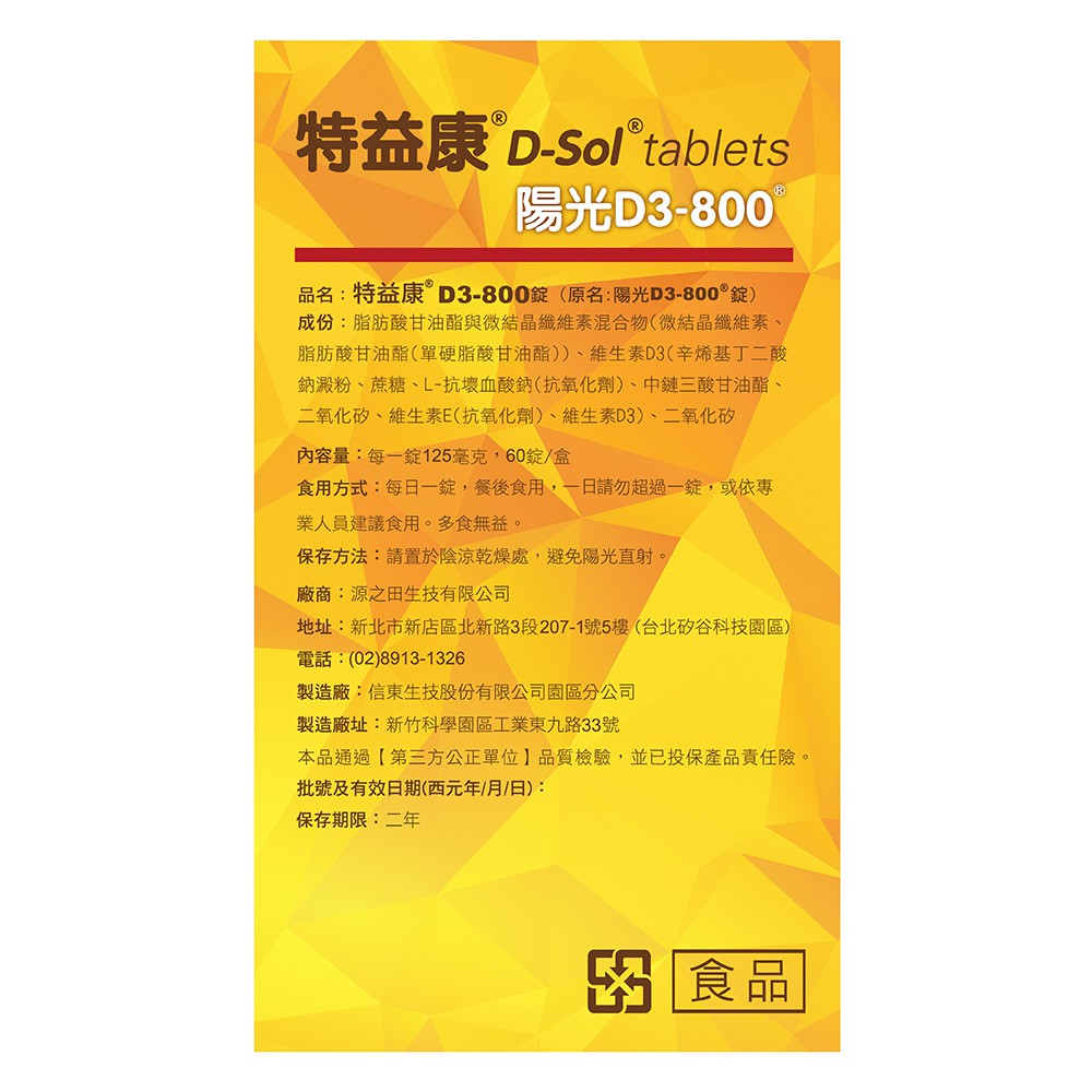 【源之田】特益康D3-800(60錠/盒+送10錠) | 維生素D新貨1組(效期2027.07.22)|新貨3組(效期2027.07.22)Well BeingSNQ健康優購網