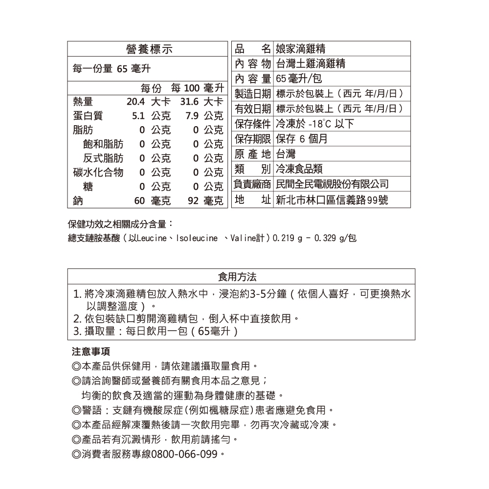 【娘家】冷凍滴雞精(65ml x 20包/盒) | 原廠直供 目前效期:2025/12/03 歡迎訂購多盒【娘家】冷凍滴雞精(65ml x 20包/盒) | 原廠直供 目前效期:2025/12/03 歡迎訂購多盒Well BeingSNQ健康優購網