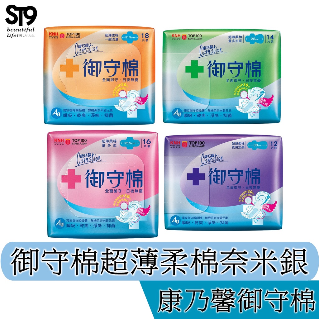 KNH 康乃馨 御守棉超薄柔棉 衛生棉 4款任選 一般流量/量多/量多加長/夜用加長 奈米銀 抑菌淨味一般流量18片21.5CM|量多型16片25.5CM|量多加長14片28CM|夜用加長12片33CMFeminine CareST9PLUS 品牌 零售 批發 團購
