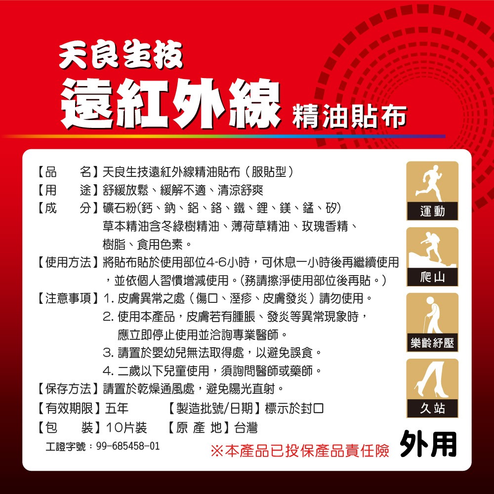 【天良生技】遠紅外線精油貼布(10片入)-10包【天良生技】遠紅外線精油貼布(10片入)-10包Pain RelieversNORITLE 諾得官方旗艦店