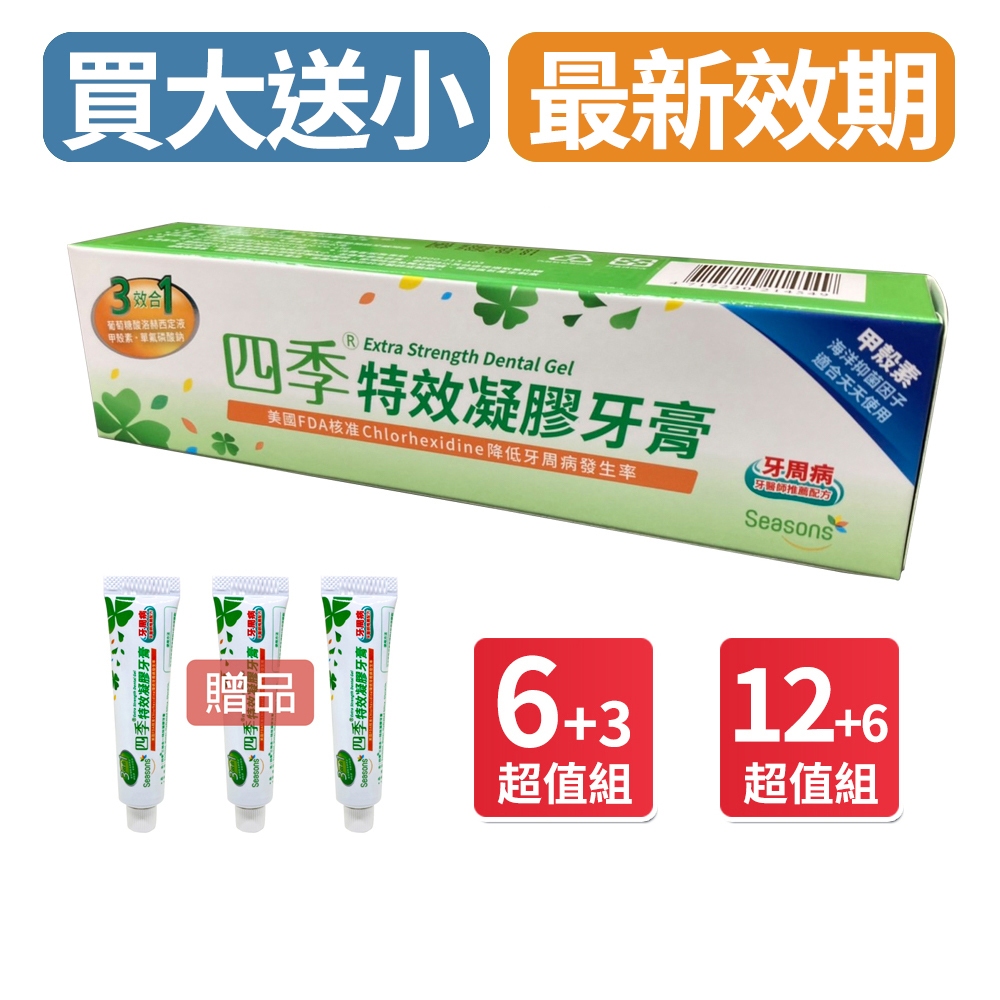 買大送小【四季 Seasons】3效合1特效凝膠牙膏多入組最新效期2028/06/236入+贈3條小牙膏|12入+贈6條小牙膏Oral CareOclean歐可林官方旗艦店