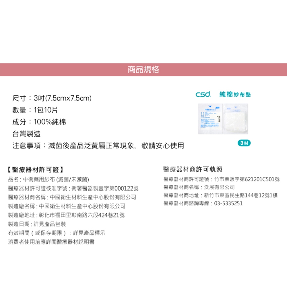 【台灣製】中衛CSD 純棉 紗布墊 藥用紗布 紗布墊 3吋 1包(10片/包)【台灣製】中衛CSD 純棉 紗布墊 藥用紗布 紗布墊 3吋 1包(10片/包)First Aid Suppliesplus健康醫療專營店