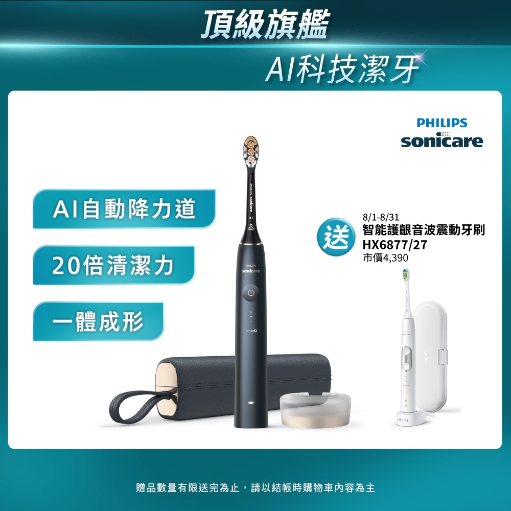 【PHILIPS 飛利浦】官方直營 Sonicare頂級尊榮AI智能音波震動牙刷 HX9996/12 (靜夜藍)活動價Oral CarePhilips 飛利浦口腔保健旗艦館
