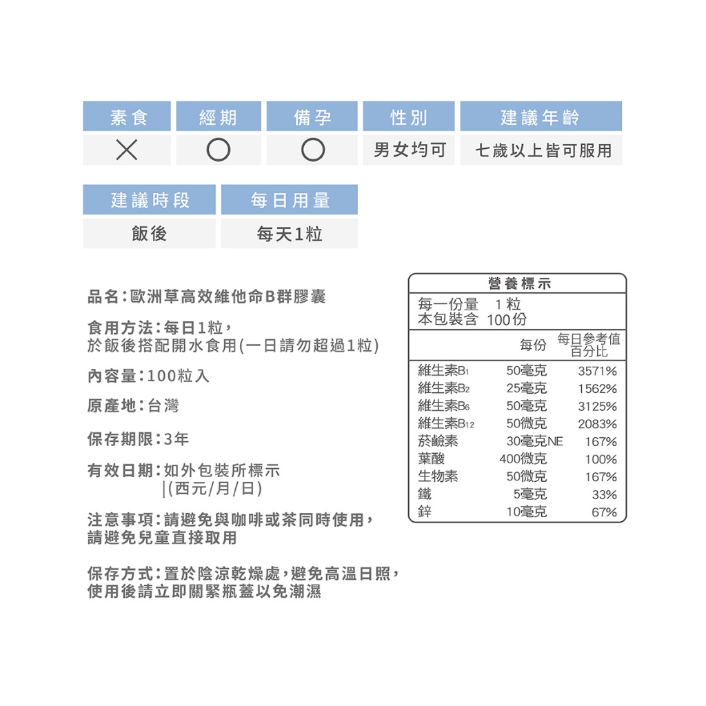 【五洲生技】歐洲草高效維他命B群膠囊 | 30粒、100粒 機能性食品30粒|100粒Well BeingPinky官方旗艦館/五洲生醫