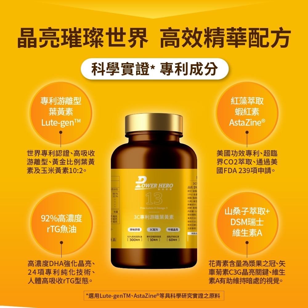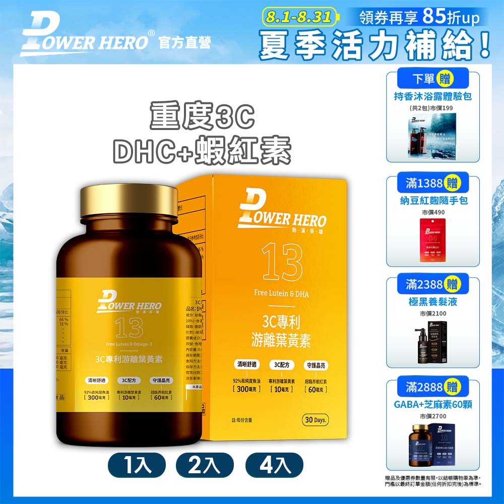 【PowerHero】3C專利游離葉黃素 1/2/4入組(60顆/盒)《晶采舒適、吸收升級》
