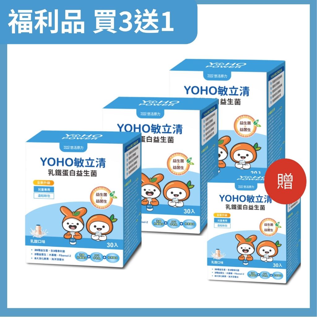 福利品 悠活原力YOHO敏立清乳鐵蛋白益生菌-乳酸口味買3送1(30條/盒)共120條 效期2025/10/11原廠貨源福利品 悠活原力YOHO敏立清乳鐵蛋白益生菌-乳酸口味買3送1(30條/盒)共120條 效期2025/10/11原廠貨源Well BeingSNQ健康優購網