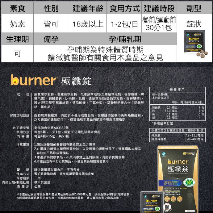 【船井】burner倍熱 極纖錠 黑金版(60顆/盒)x1~7盒優惠組黑金限定版x2盒組|黑金限定版x4盒組|黑金限定版x6盒組|黑金限定版x7盒組|黑金限定版x1盒組Weight ManagementSNQ健康優購網