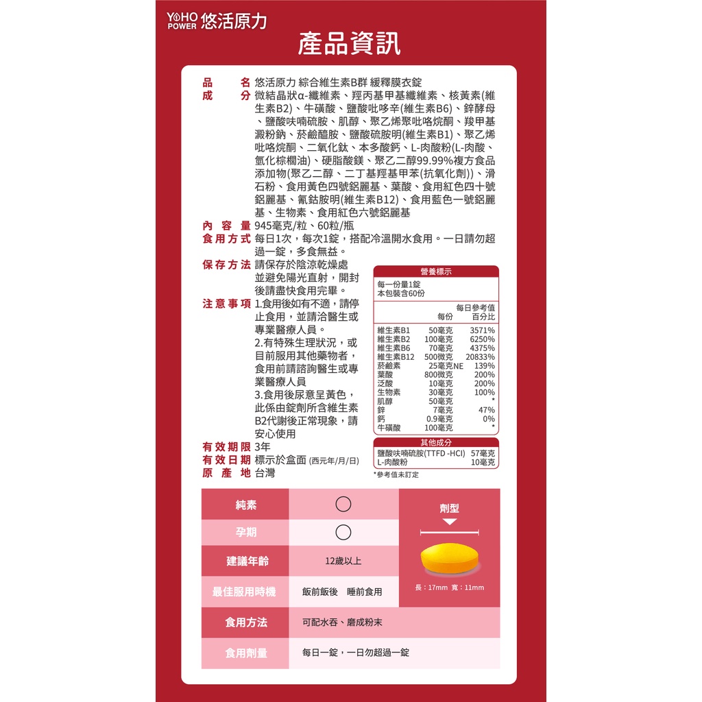 悠活原力 原力綜合維生素B群 緩釋膜衣錠X3瓶組(60粒/瓶);原廠授權通路 SNQ健康優購網3瓶(60粒/瓶*3瓶)|5瓶(60粒/瓶*5瓶)Well BeingSNQ健康優購網