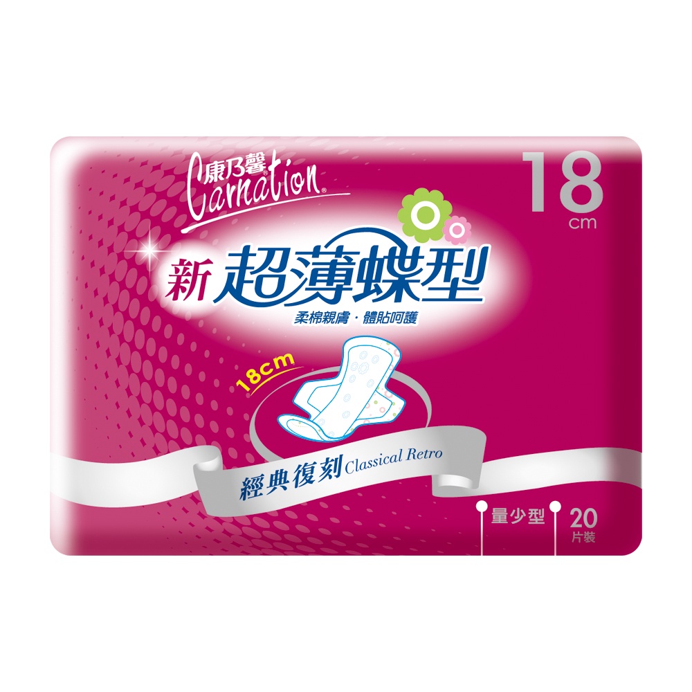 KNH康乃馨 (新)超薄蝶型衛生棉 量少型 18cm 0.2cm超薄 康那香KNH康乃馨 (新)超薄蝶型衛生棉 量少型 18cm 0.2cm超薄 康那香Feminine CareST9PLUS 品牌 零售 批發 團購