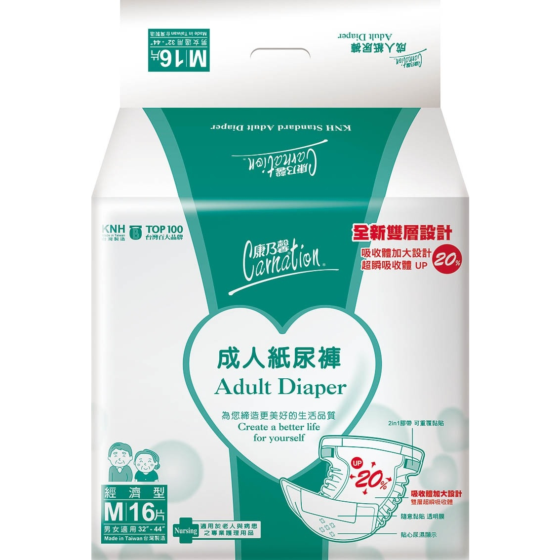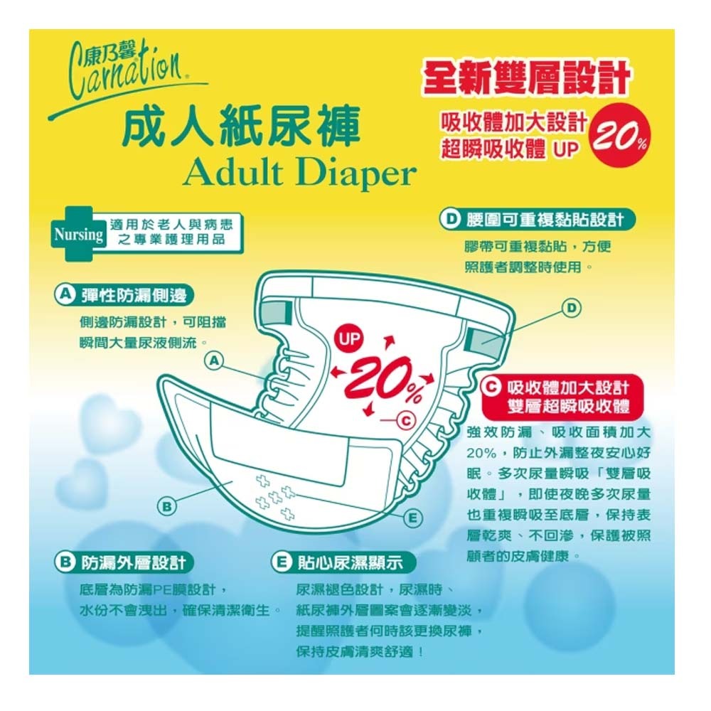 康乃馨 成人紙尿褲 M號16片/包 L-XL 號13片 吸收體加大 彈性防漏 腰圍可重複黏貼L-XL 號13片/包|M號16片/包Adult Diapers & IncontinenceST9PLUS 品牌 零售 批發 團購