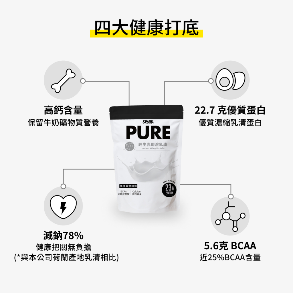 Spark Pure 純生乳即溶乳清蛋白1kg袋裝 – 美國伊利諾/荷蘭/黃金加州產區|純乳清 乳清蛋白純生乳即溶乳清蛋白(美國伊利諾產區)|純生乳(荷蘭產區 效期2026/1/9)|純生乳即溶乳清蛋白(黃金加州)FitnessSpark Protein