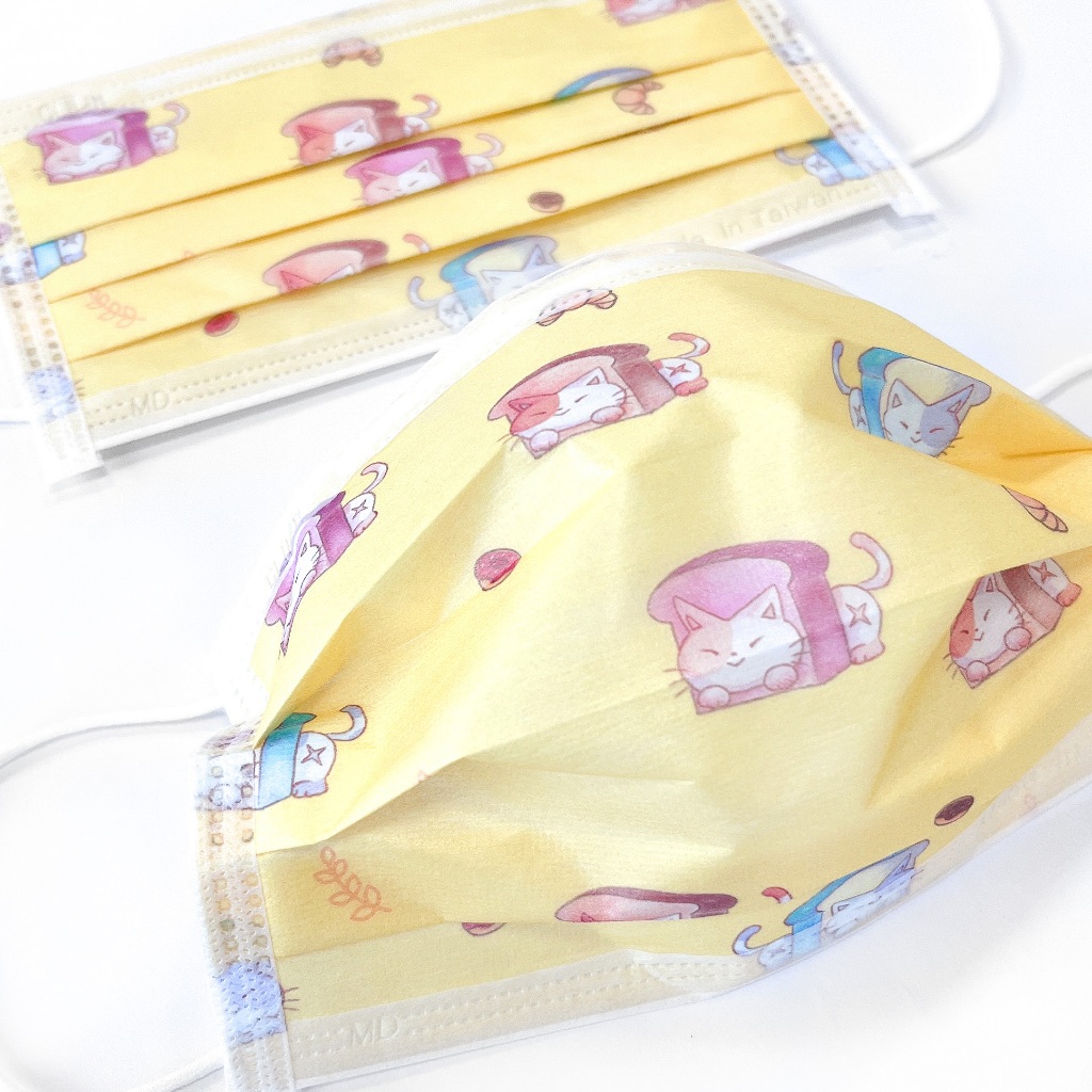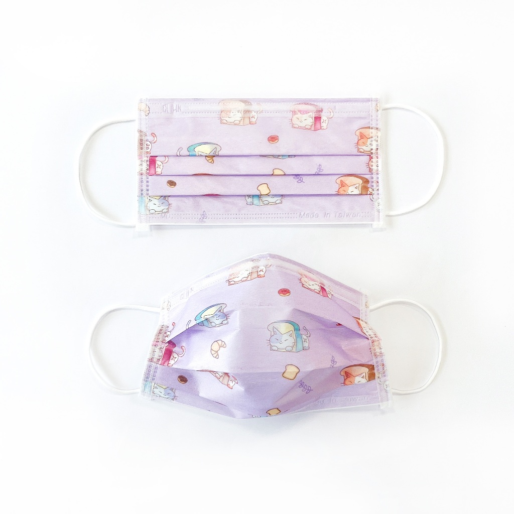 【STYLISH 成人運動機能口罩】可愛吐司貓_成人機能口罩30入-MIT&MD雙鋼印醫療級黃粉紫三色 – 3色各10片|米色 – 單色30入Medical Gloves & MasksSTYLISH 史戴利
