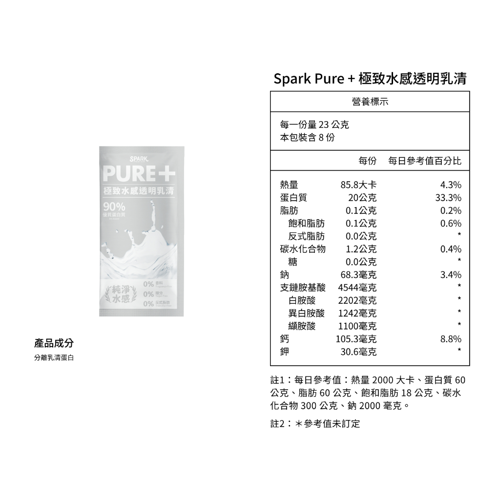 Spark Pure+ 極致水感透明乳清(8入無盒包裝)|分離乳清 純乳清 無調味乳清 零添加Spark Pure+ 極致水感透明乳清(8入無盒包裝)|分離乳清 純乳清 無調味乳清 零添加FitnessSpark Protein