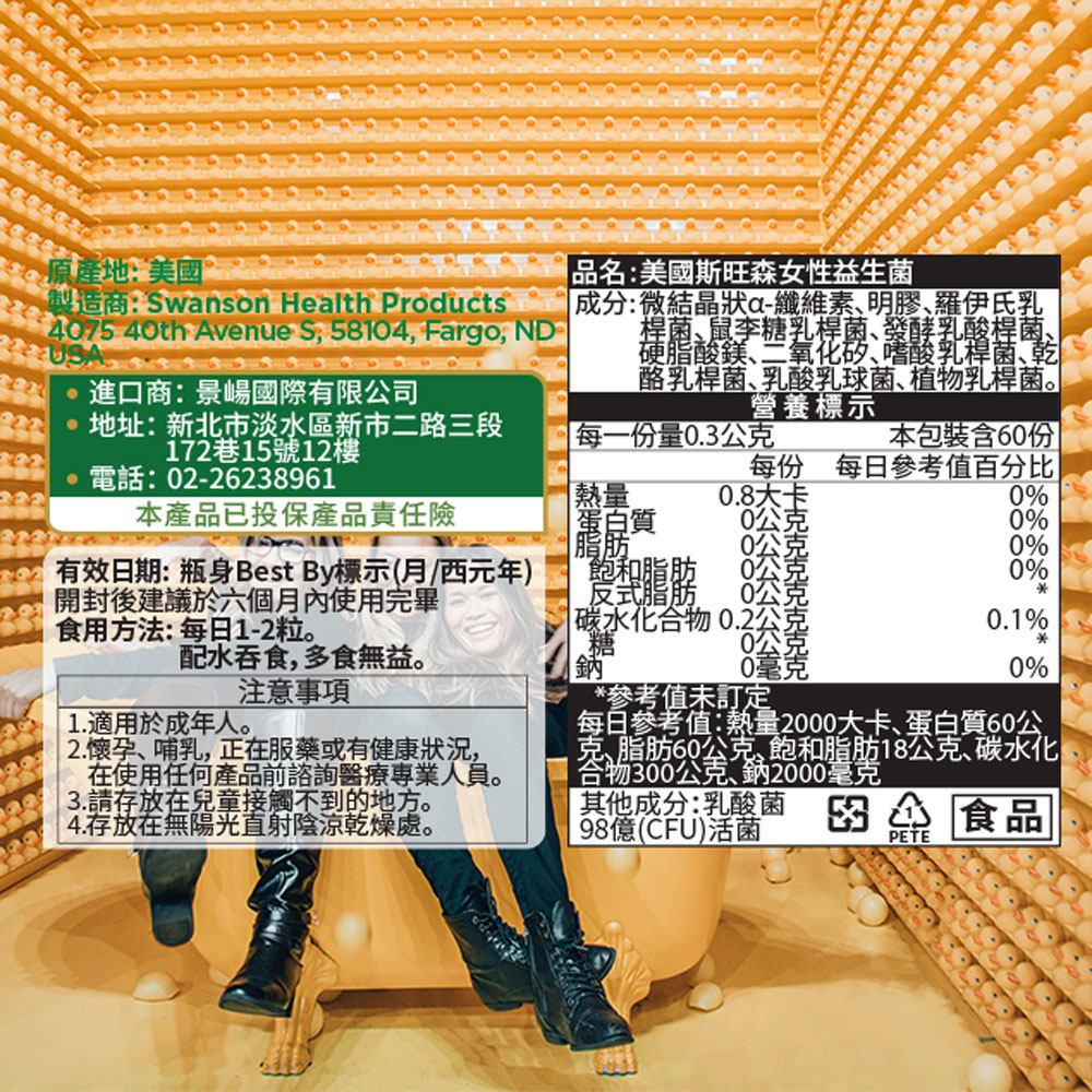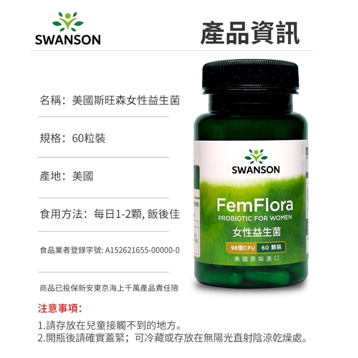 【SWANSON 美國斯旺森】 女性益生菌 60顆 Probiotic 7種菌種 順暢 FemFlora 原裝進口現貨|全新現貨Well BeingSWANSON 美國斯旺森 原廠授權台灣獨家經銷