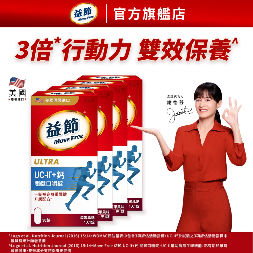 【Move Free 益節】益節UC-II加鈣關鍵口嚼錠 (30錠x4瓶)|益節官方旗艦店UC-II加鈣口嚼錠30錠x4瓶Well BeingMove Free益節 官方旗艦店