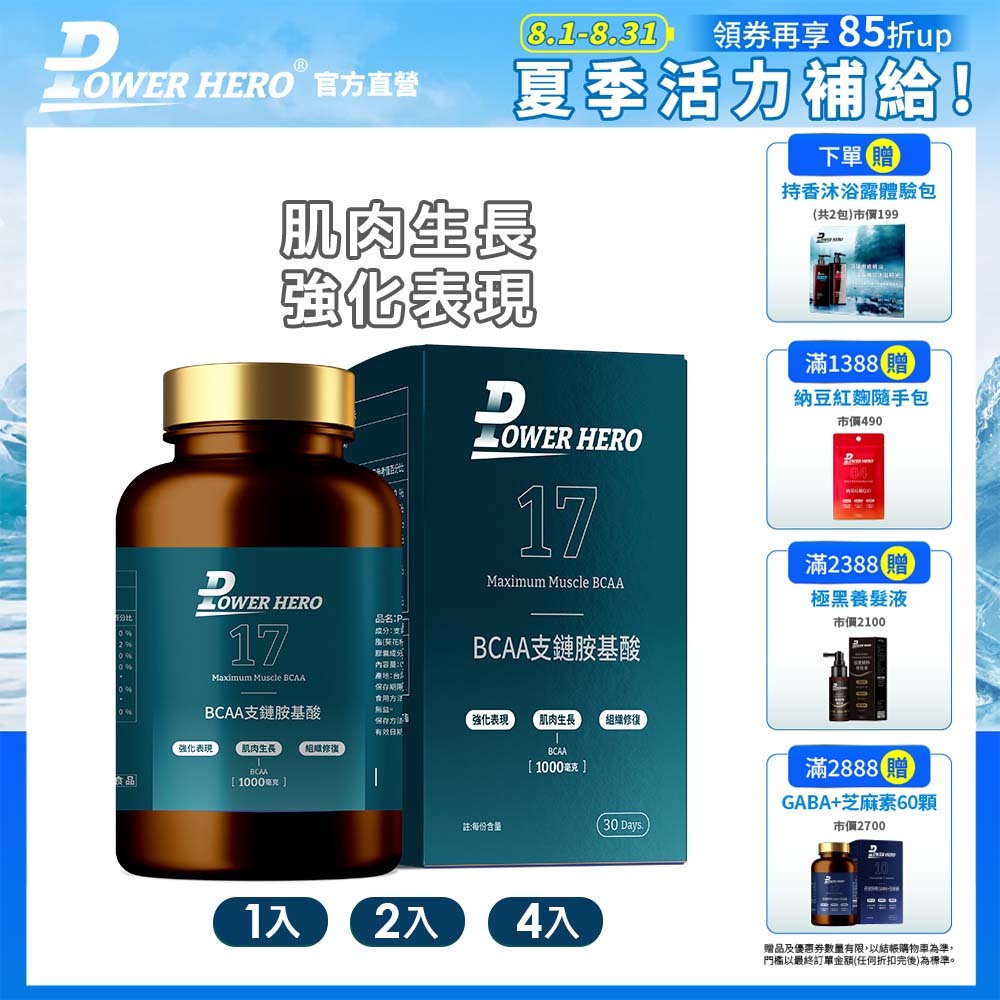 【PowerHero】BCAA 支鏈胺基酸 1/2/4入組 (60顆/盒)《肌耐提升、組織修復》4入|2入|1入FitnessPowerHero 官方旗艦館