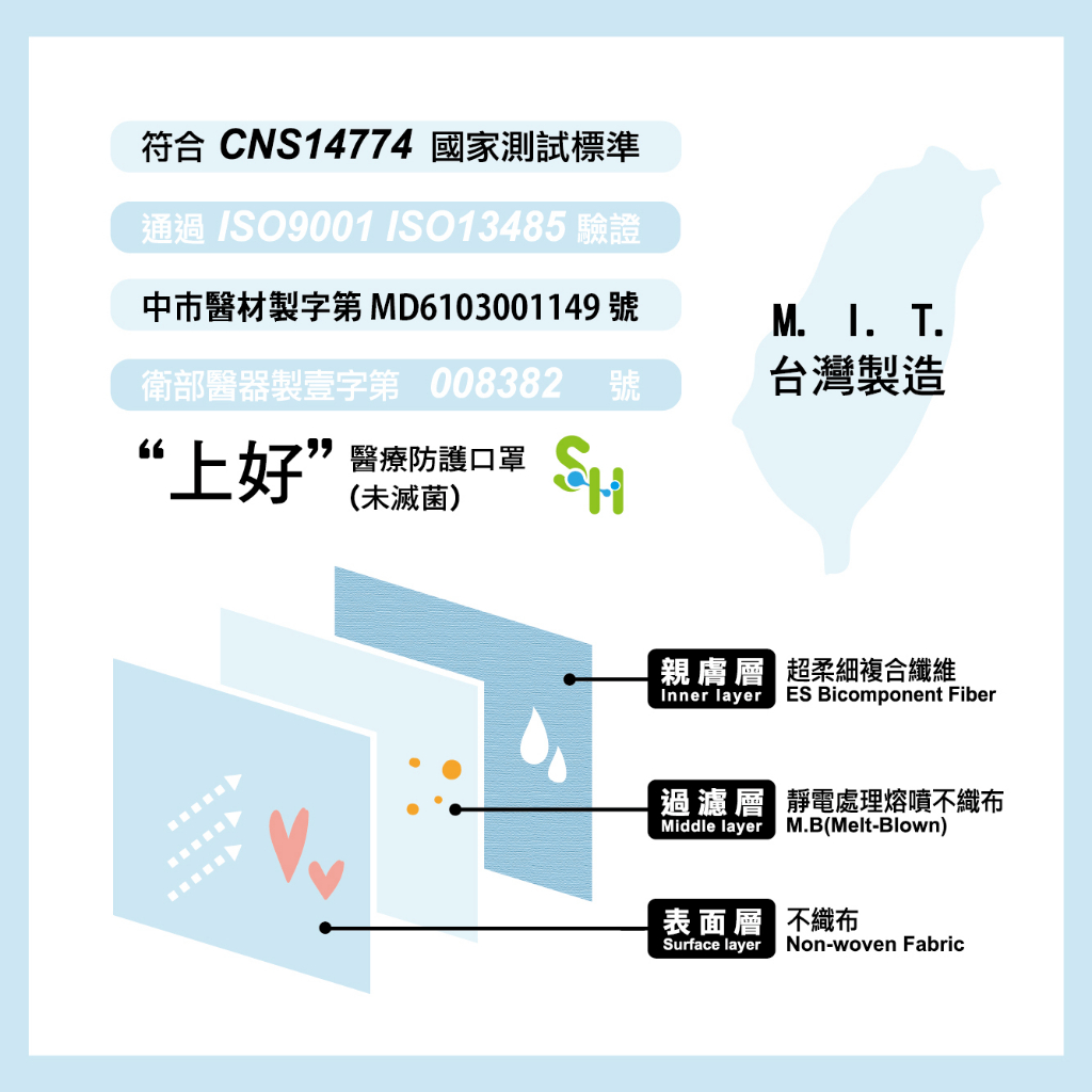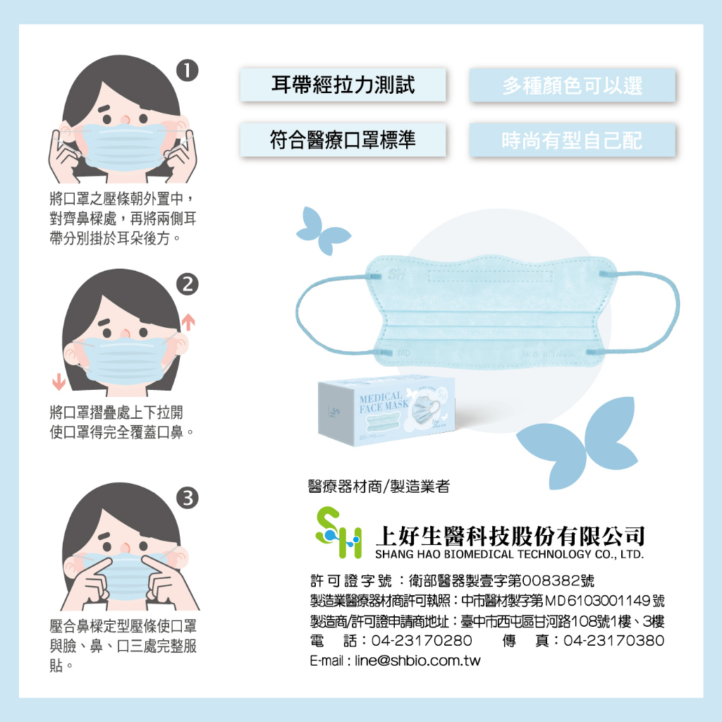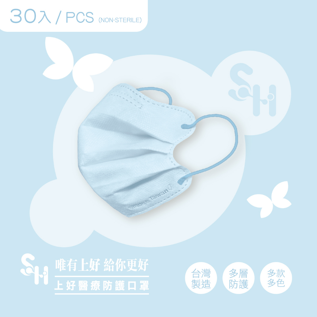 【上好生醫】成人|天空藍(蝶型)|30入裝 醫療防護口罩天空藍(蝶型) 30入Medical Gloves & MasksSH 上好生醫