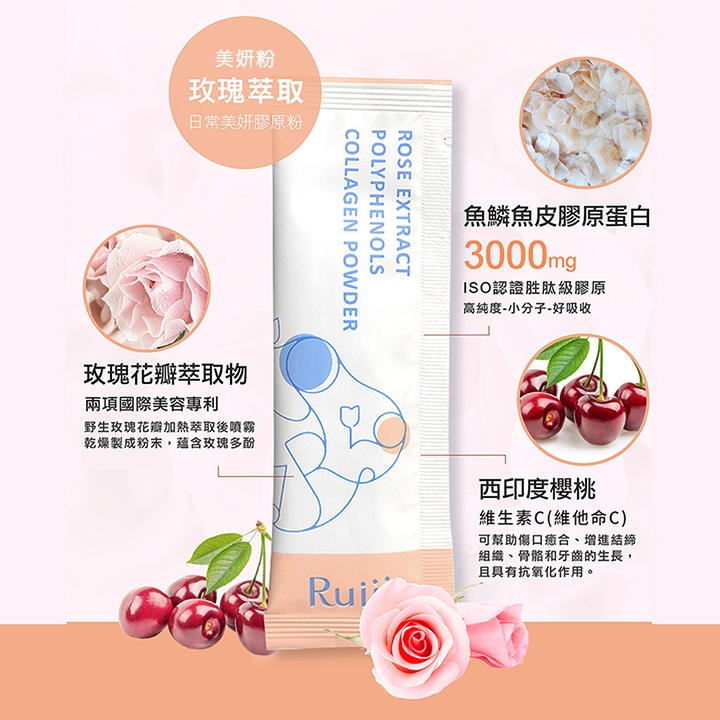 【Ruijia露奇亞】玫瑰萃取膠原蛋白粉(30包) 膠原蛋白粉 西印度櫻桃 玫瑰多酚 美妍 維他命c nippi【Ruijia露奇亞】玫瑰萃取膠原蛋白粉(30包) 膠原蛋白粉 西印度櫻桃 玫瑰多酚 美妍 維他命c nippiBeauty SupplementsRuijia露奇亞 官方旗鑑店