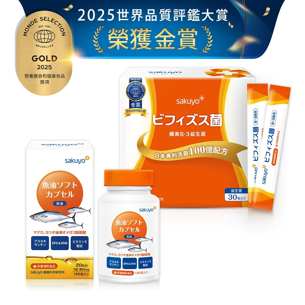 sakuyo 纖美B3益生菌盒裝版(30條/盒)+魚油軟膠囊(160粒/瓶) 1+1 輕活組1+1組合品Well Beingsakuyo 官方旗艦館