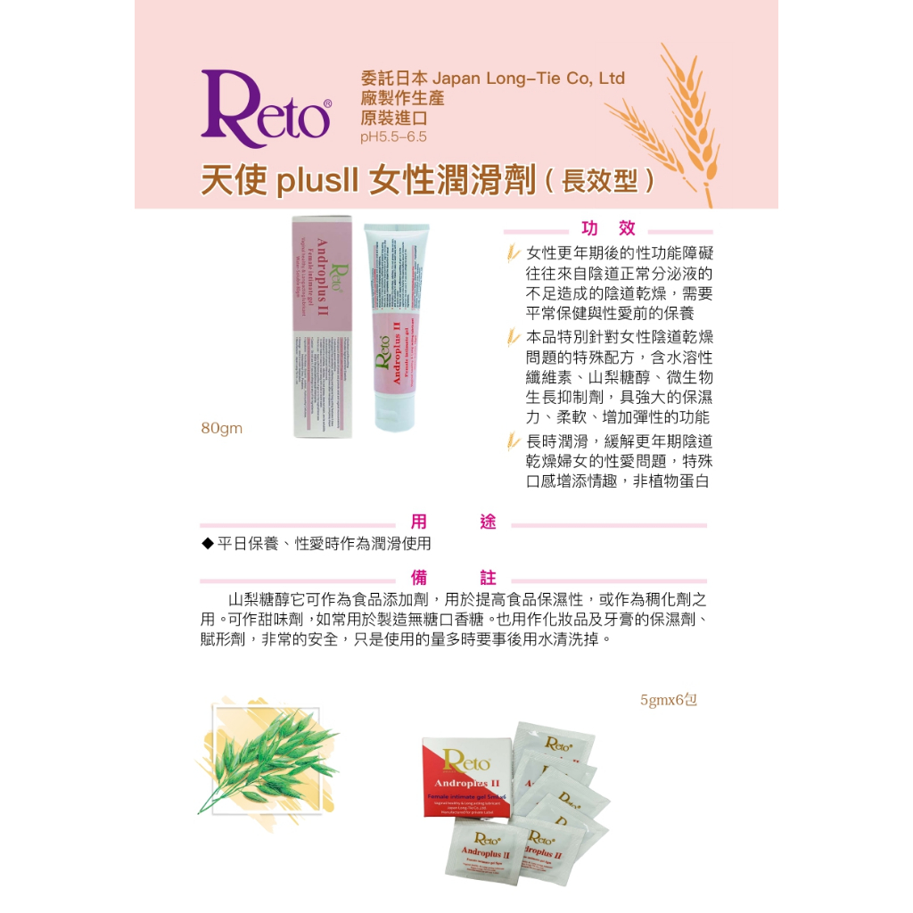 【Reto】天使plus潤滑劑 | 滋潤保濕型 | 80gm | 美身 | 私處保健 | 潤滑液【Reto】天使plus潤滑劑 | 滋潤保濕型 | 80gm | 美身 | 私處保健 | 潤滑液LubricantsReto阿伊媞歐 敏弱肌膚專家
