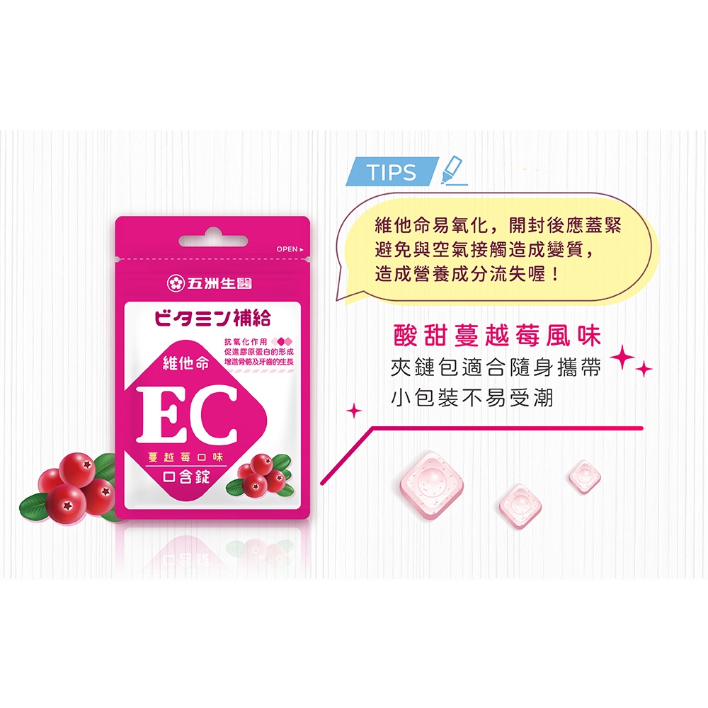 【五洲生醫 】蔓越莓EC口含錠(維他命🄴+維他命🄲)_夾鏈包_10粒/包 美肌保健、養顏美容食品蔓越莓EC口含錠(夾鏈包)Beauty SupplementsPinky官方旗艦館/五洲生醫